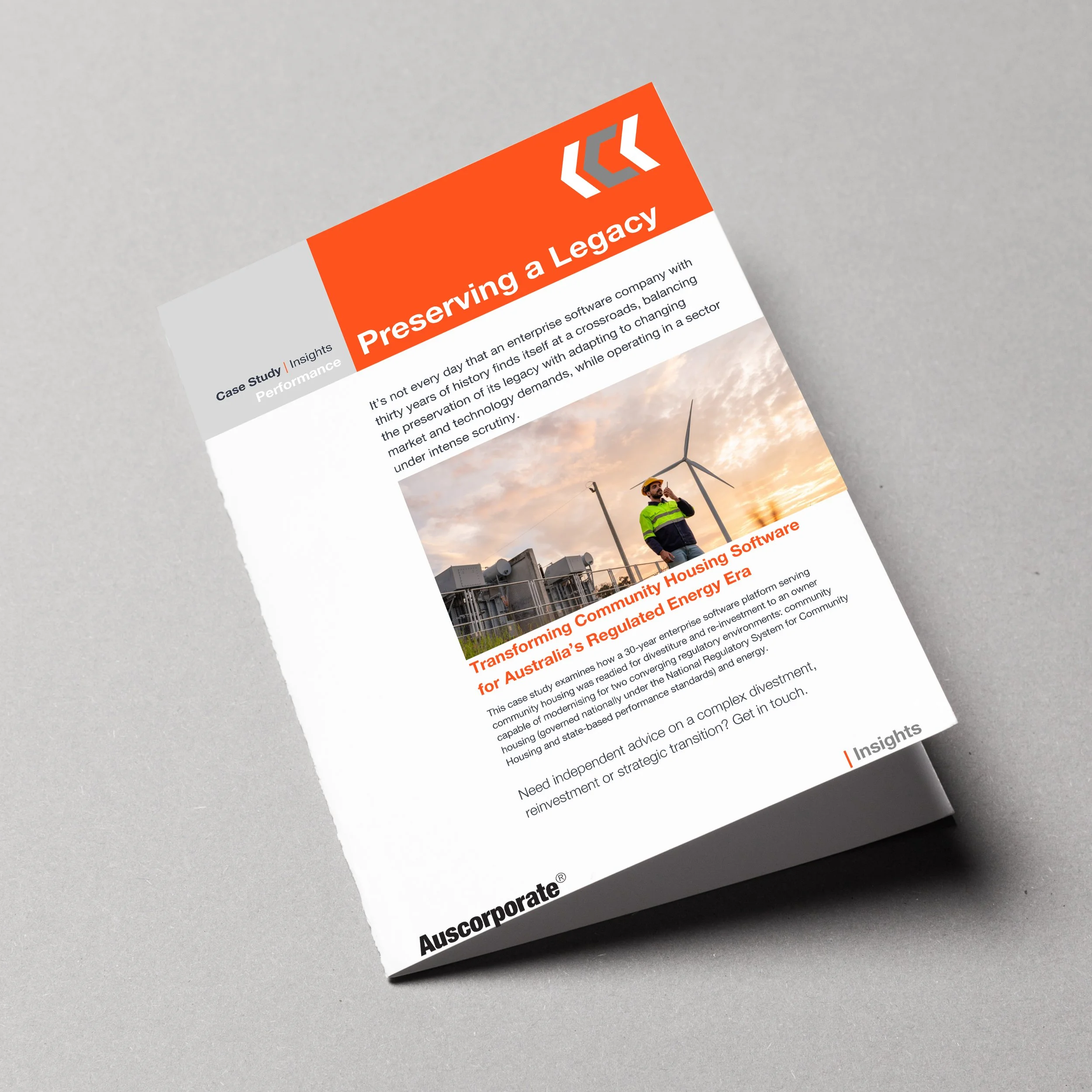 This case study examines how a 30-year enterprise software platform serving community housing was readied for divestiture and re-investment to an owner capable of modernising for two converging regulatory environments: community housing (governed nationally under the National Regulatory System for Community Housing and state-based performance standards) and energy.